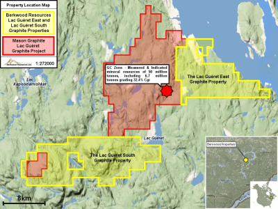 Brian Buchanan, CEO and Director of the Company states: "This acquisition bolsters Berkwood's position in the Graphite space. The Lac Gueret South Graphite Property is well located in the Grenville Province, sharing a similar prospective geological environment and adjacent to Mason Graphite's Lac Gueret Project. We are fortunate to add this asset to our graphite portfolio in this prospective region and looking forward to starting exploration work."