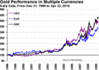 Wie der Graph zeigt, bleibt der Goldpreis über mehrere Währungen (USD, EUR, GBP) nahe an seinem historischen Höchststand, während die Staatsverschuldung auf den Euro ebenso wie das britische Pfund drückt. Während kurzfristige Goldpreisbewegungen auch weiterhin den USD beeinflussen werden, wird die grundsätzliche Besorgnis über die Auswirkungen von steigender Verschuldung und Inflation die Goldnachfrage von strategischen Investoren hoch halten.
