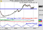 2. Die zuletzt veröffentlichten Daten des COT Report signalisieren auf dem aktuellen Preisniveau noch kein stark angestiegenes Verkaufsinteresse der kommerziellen Marktteilnehmer. Im Vergleich zu 2011 fällt sogar auf, dass diese Marktteilnehmer damals auf einem vergleichbaren Preisniveau schon deutlich stärker in ihrem Absicherungsverhalten waren, so dass es so scheint als ob aktuell Palladium ein höherer Preis zugestanden wird.