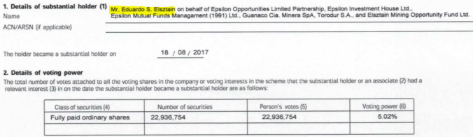 Wie heute bekannt wurde, hat sich Elsztain 22,93 Millionen Aktien bzw. 5,02% an Troy Resources gekauft: