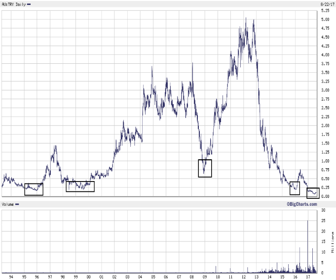 Es gibt Investmentgrößen, die laufen einem medial immer wieder über den Weg, wie z.B. Marc Faber, George Soros oder Jim Rogers. Und dann gibt es Investoren dieser Klasse, über die man nicht so häufig in den Medien liest. Einer davon ist sicherlich Eduardo Elsztain.Der Argentinier Elsztain startete seine Investmentkarriere 1990, als er in das New Yorker Büro von George Soros kam und ihm 10 Millionen USD "abschwatzte". Diese 10 Millionen USD hat Elsztain dann in 500 Millionen USD verwandelt und dies mit Immobilieninvestments in Argentinien. Zusammen mit Sorors managte er dann den Dolphin Fund, der Investoren eine Traumrendite von 1.800% in 10 Jahren einbrachte. Seit 1994 ist Elsztain Chairman der an der NASDAQ notierten Immobilienfirma CRESUD (Ticker: CRESY). Heute zählt Elsztain zu den reichsten Argentiniern und nun ist er über seine Firmen bei Troy Resources eingestiegen.
