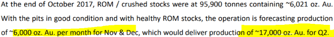 Der Monat Oktober soll super gelaufen sein (4.564 Unzen Gold, wurde in der Präsentation korrigiert) und das Management rechnet mit einer Goldproduktion im laufenden Quartal von etwa 17.000 Unzen. Die wäre eine Steigerung um 4.115 Unzen bzw. 32% zum Vorquartal: