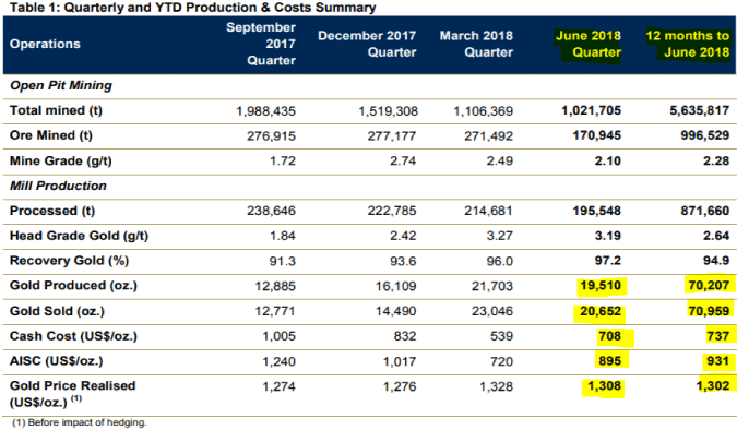 Im Gesamtjahr lag die Produktion bei 70.207 Unzen zu All-In-Kosten von 931 USD je Unze und somit leicht über den vorher hochgesetzten Prognosen: