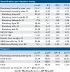 Performance und IndizesDie Preise an den Rohstoffmärkten haben zuletzt wieder etwas nachgegeben. Der Bloomberg Commodity Index (Spot) fiel zeitweise unter die Marke von 350 Punkten zurück. Vor allem Energierohstoffe tendierten etwas schwächer. Zum einen gab der Handelsstreit zwischen den USA und China weiterhin Anlass zu Sorge bezüglich der Auswirkungen auf das Wirtschaftswachstum und die Rohstoffnachfrage. Zum anderen wurde aus den USA ein überraschen hoher Öl-Lageraufbau gemeldet.