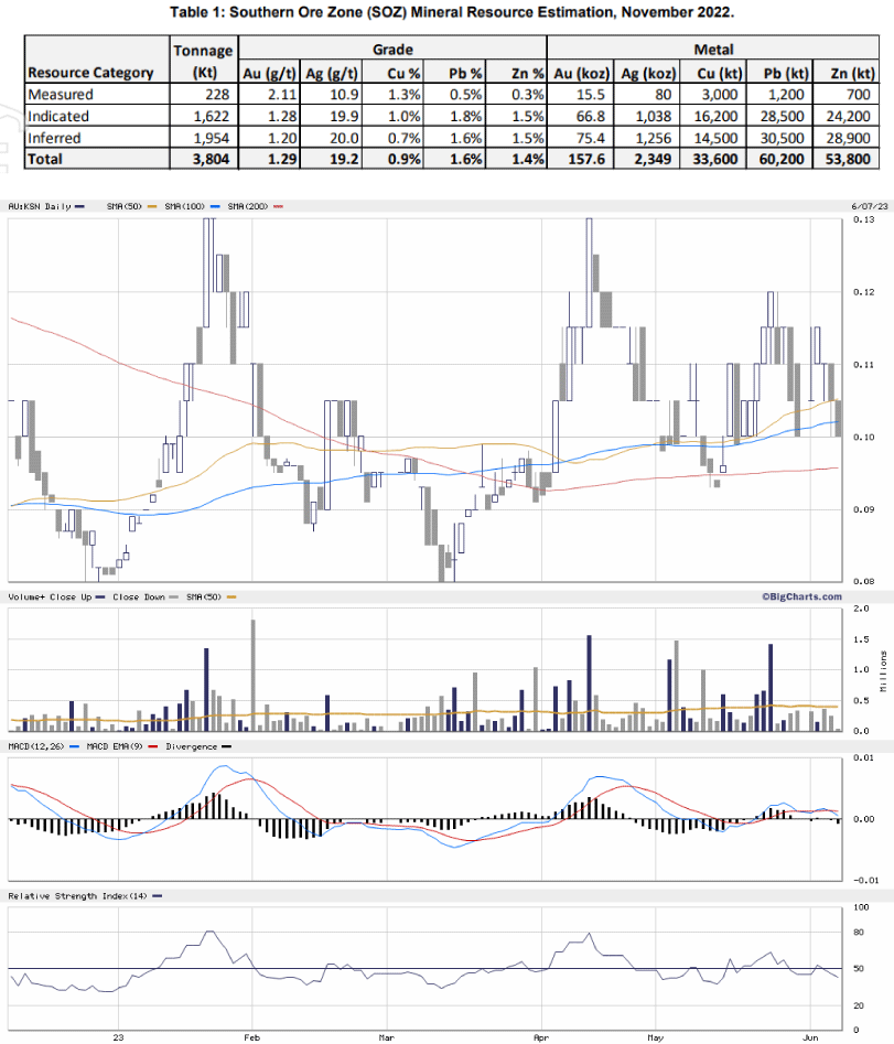 Aktuell liegen auf der SOZ gut 157.000 Unzen Gold, 2,3 Millionen Unzen Silber plus Kupfer, Blei und Zink. Mit den Bohrungen, die im 4. Quartal starten sollen, erhofft man sich natürlich eine Ausweitung der Ressource und auch eine Verbesserung in den Kategorien:
